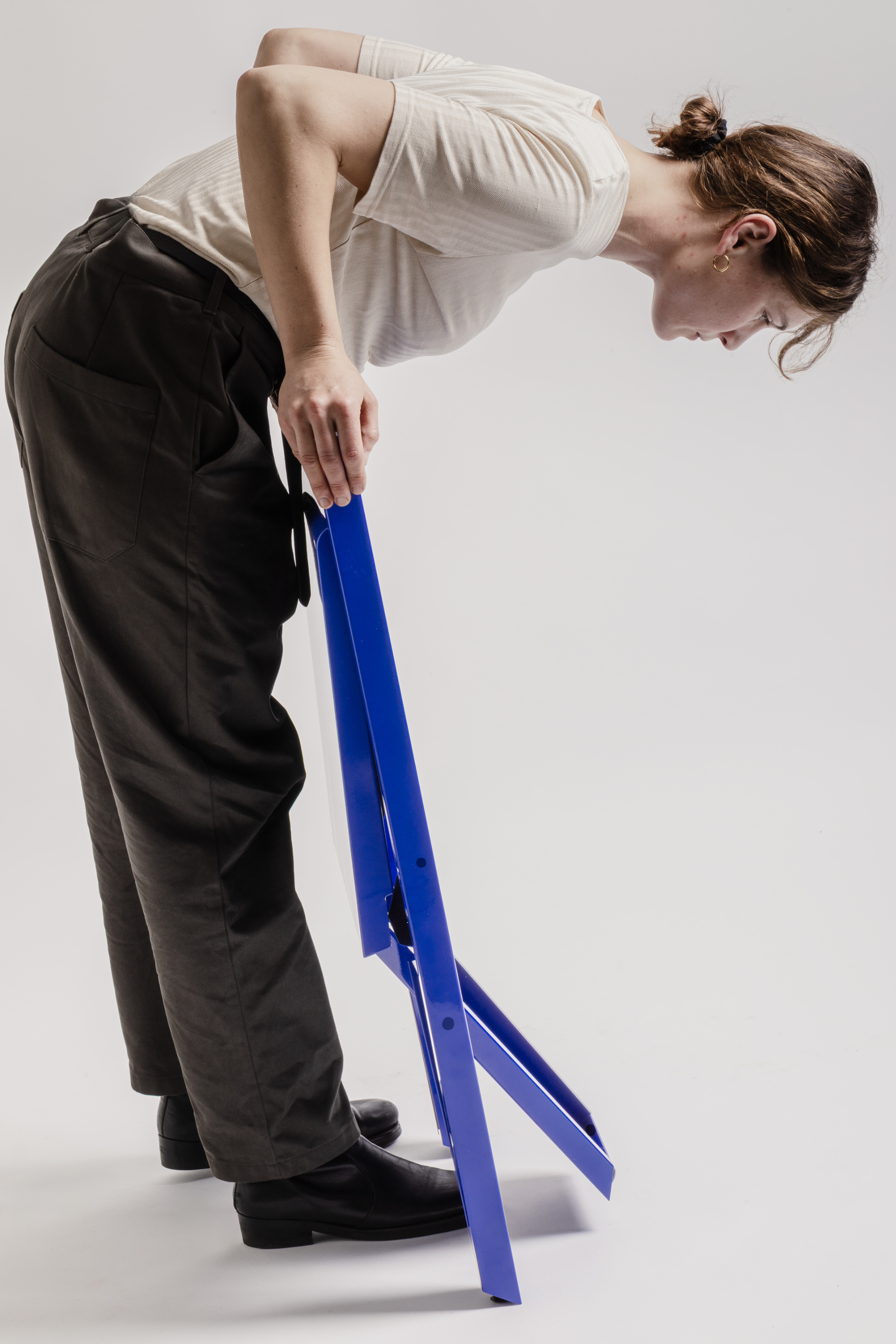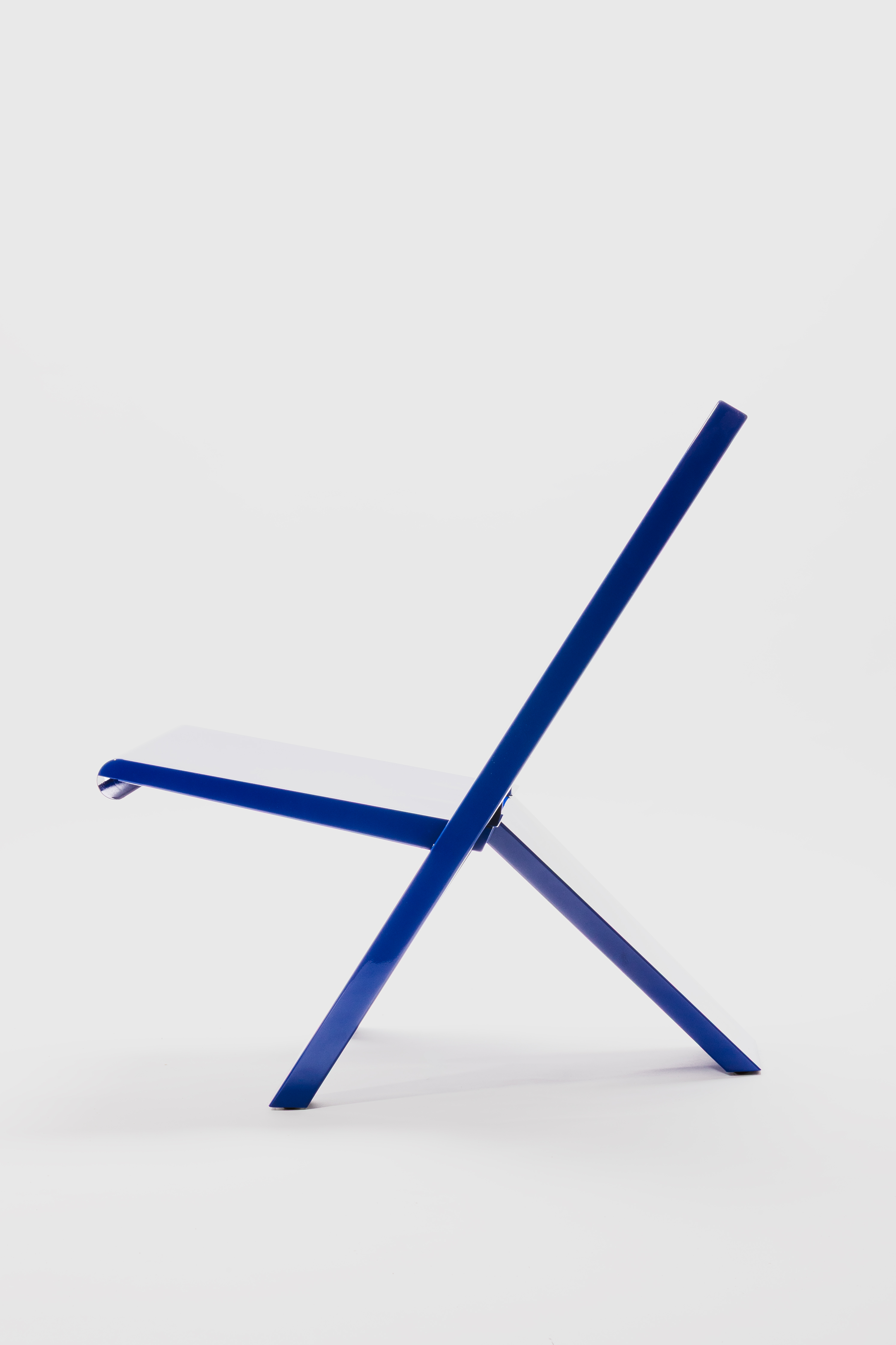 The Low Chair reduces construction to its essentials: one material, two parts, no fixings. Made from folded steel, the compact, collapsible chair is composed of two interlocking elements that slot together without glue or screws. Stability is achieved through compression and leverage. Comfort is defined by geometry and proportion.